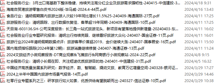 旅游、旅行、文旅、入境游资料包,月度新增13份(2024.3.23-2024.4.20):