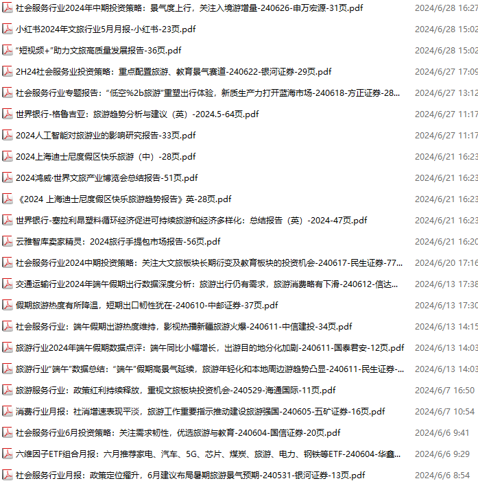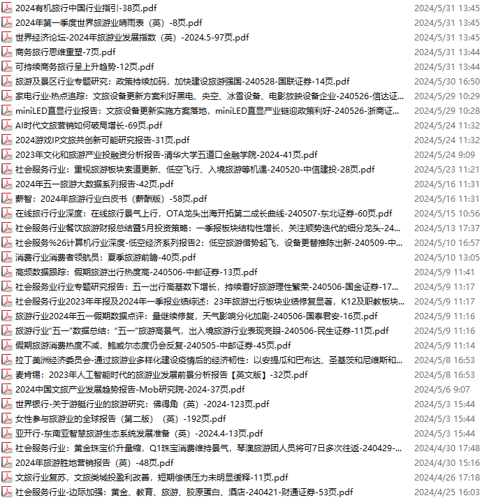 旅游、旅行、文旅、入境游资料包,月度新增35份(2024.4.20-2024.6.1):