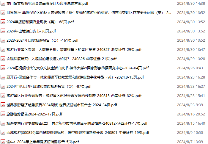 旅游、旅行、文旅、入境游资料包,月度新增16份(2024.8.3-2024.8.31):