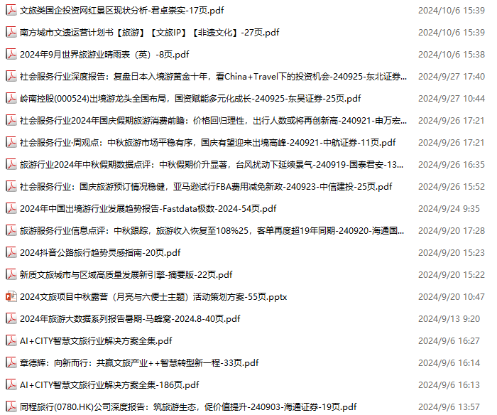旅游、旅行、文旅、入境游资料包,月度新增19份(2024.8.31-2024.10.6):