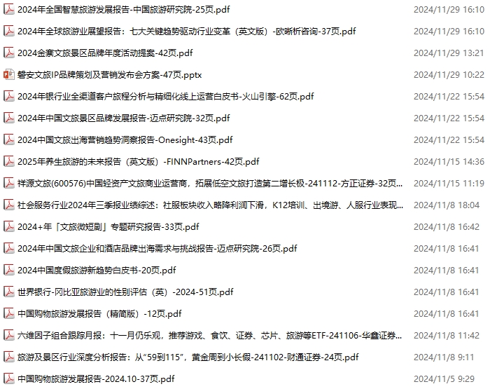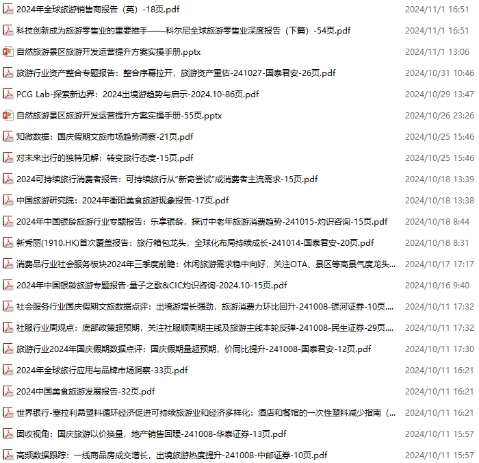 旅游、旅行、文旅、入境游资料包,月度新增18份(2024.11.2-2024.11.30):