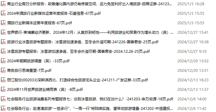 旅游、旅行、文旅、入境游资料包,月度新增12份(2024.11.30-2025.1.4):