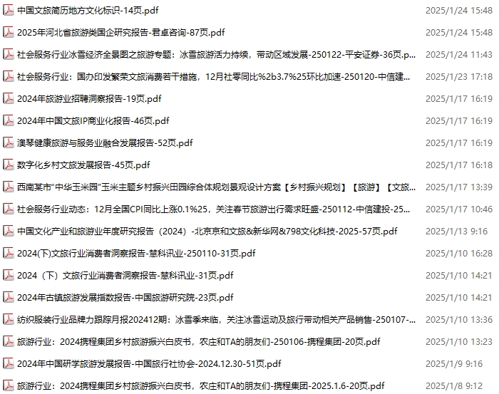 旅游、旅行、文旅、入境游资料包,月度新增18份(2025.1.4-2025.2.7):