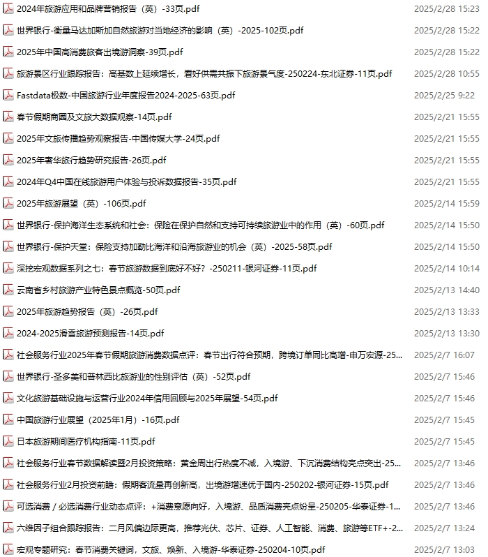 旅游、旅行、文旅、入境游资料包,月度新增26份(2025.2.7-2025.3.1):