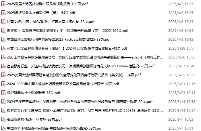 旅游、旅行、文旅、入境游资料包,月度新增15份(2025.3.1-2025.4.4):