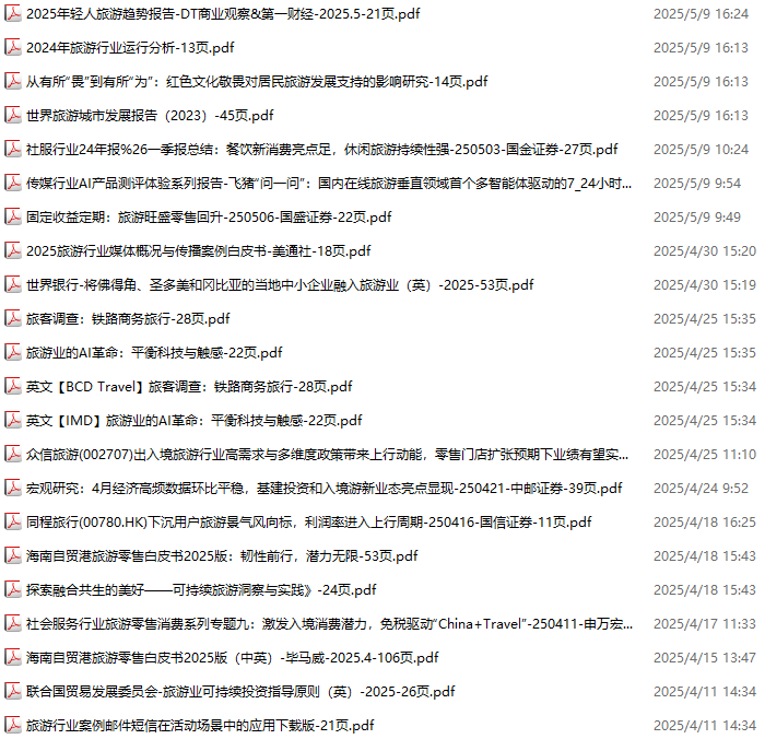 旅游、旅行、文旅、入境游资料包,月度新增22份(2025.4.4-2025.5.9):
