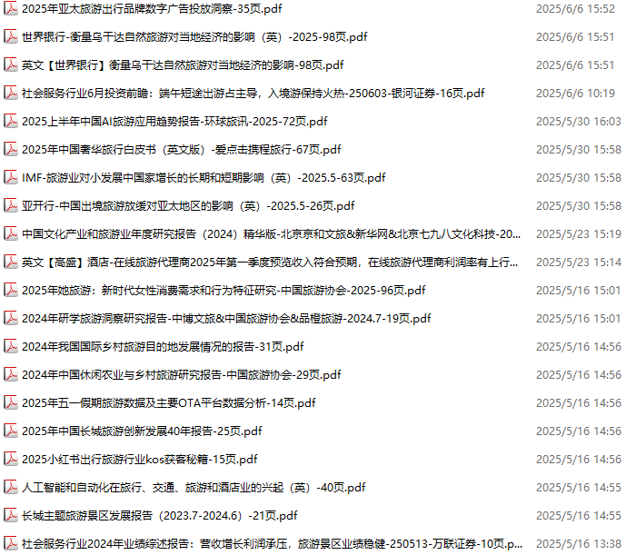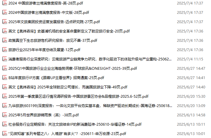 旅游、旅行、文旅、入境游资料包,月度新增15份(2025.6.6-2025.7.4):