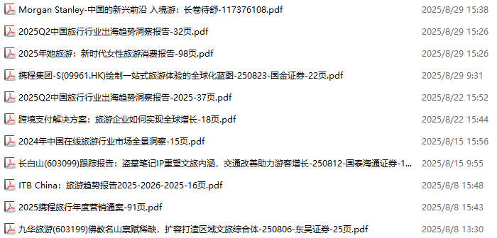 旅游、旅行、文旅、入境游资料包,月度新增11份(2025.8.1-2025.8.29):