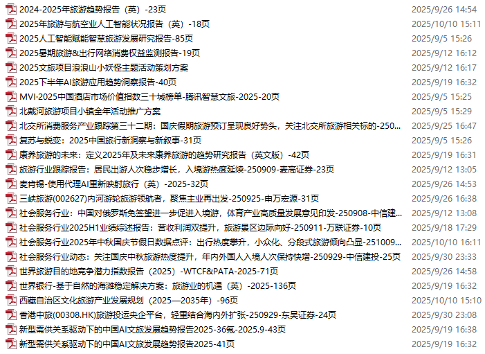 旅游、旅行、文旅、入境游资料包,月度新增24份(2025.8.29-2025.10.10)