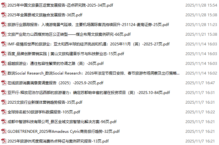 旅游、旅行、文旅、入境游资料包,月度新增15份(2025.10.31-2025.11.28)