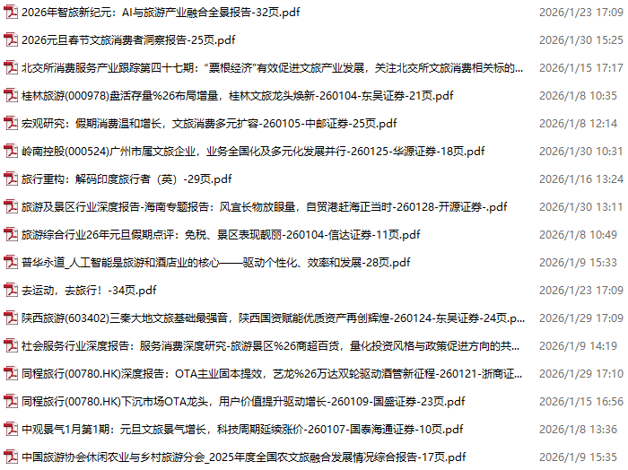 旅游、旅行、文旅、入境游资料包,月度新增17份(2026.1.2-2026.1.31)
